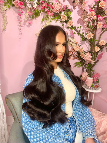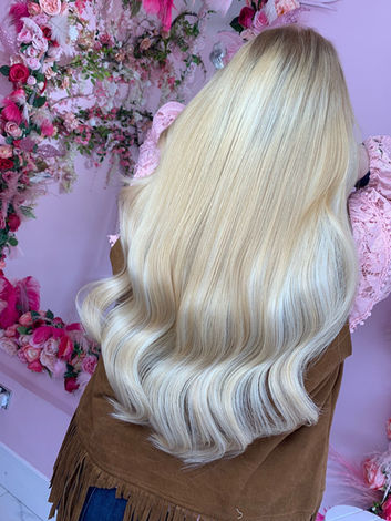 Small micro rings will be placed in a line close to your scalp each one spaced apart with enough hair included to support the weight of the extension. Once the rings are applied a hair weft will be sewn around the rings to secure. This method involves no heat no glue. Wefts can be doubled to achieve maximum thickness without damaging the natural hair. This method is very comfortable and you can wear your hair up still. Maintenance required 6-9 weeks